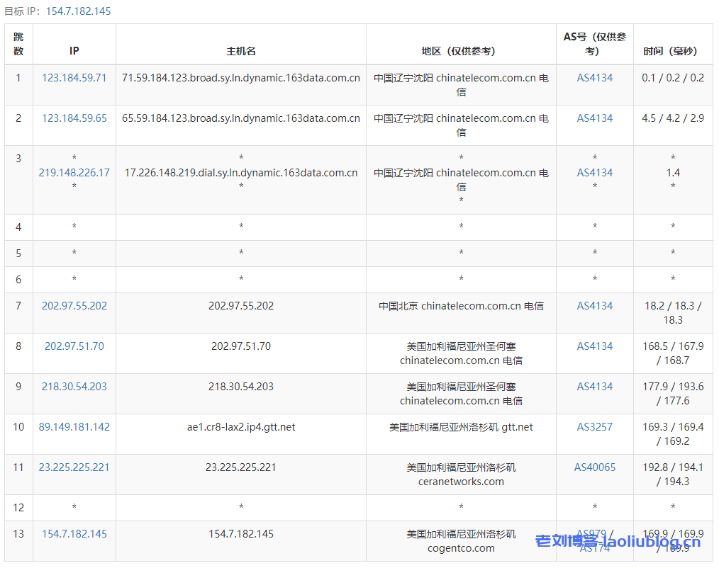 7 59.43.247.141 149.88 ms * China, Beijing, ChinaTelecom