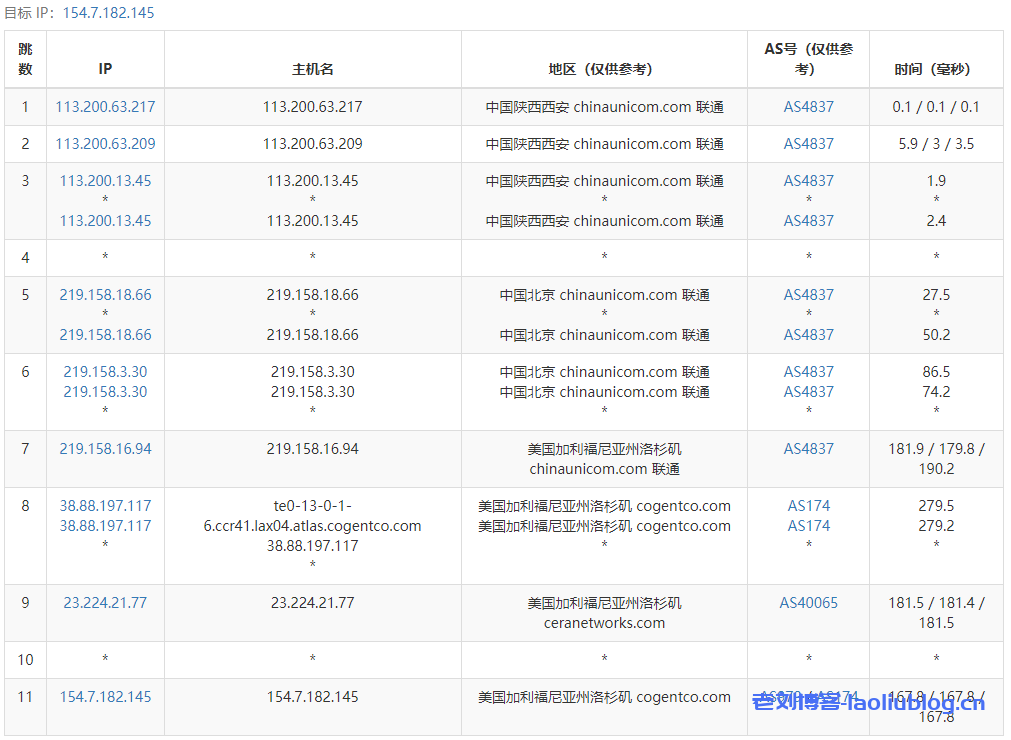 12 125.33.186.54 150.46 ms AS4808 China, Beijing, ChinaUnicom