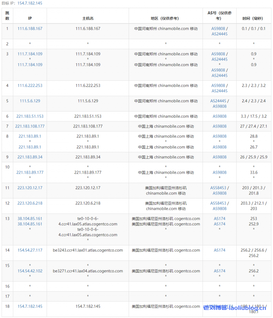 13 221.183.94.21 187.02 ms AS9808 China, Beijing, ChinaMobile