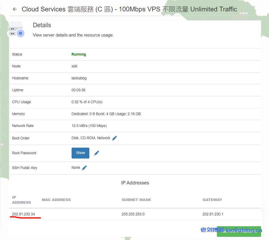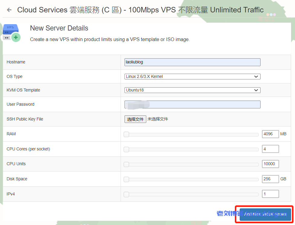 Netfront香港VPS:100Mbps VPS 不限流量 Unlimited Traffic (4C+4G+256G+1IP) (C),购买入口
