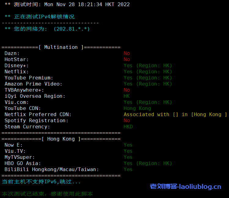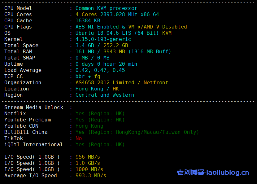 前文《Netfront香港VPS:三网直连,香港原生IP,100M国内优化带宽不限流,解锁港区奈菲,4C4G256G仅550.7元/月》,老刘给大家分享了Netfront香港VPS新推出的100M国内优化带宽不限流VPS套餐,那么这款VPS性能怎么样?老刘这里入手了一台进行了简单测评,来看看其国内延迟、丢包率、性能和带宽、路由去回程、流媒体和TikTok检测情况!整体来看Netfront这款VPS是香港原生IP,解锁港区NF奈菲、Disney+、YouTube,三网直连,100Mbps带宽跑满!