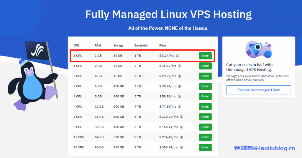 - Unmanaged非托管型就是买个裸机VPS,随意DIY,包括系统在内的所有程序自己搭建(按流程很简单),在学会一些Linux的知识的同时还能省点钱,性价比较高。