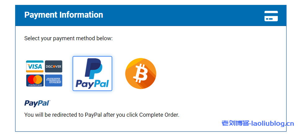 支付方式有信用卡(Visa、Master Card)、Paypal和比特币,支付方式建议优先选择Paypal: