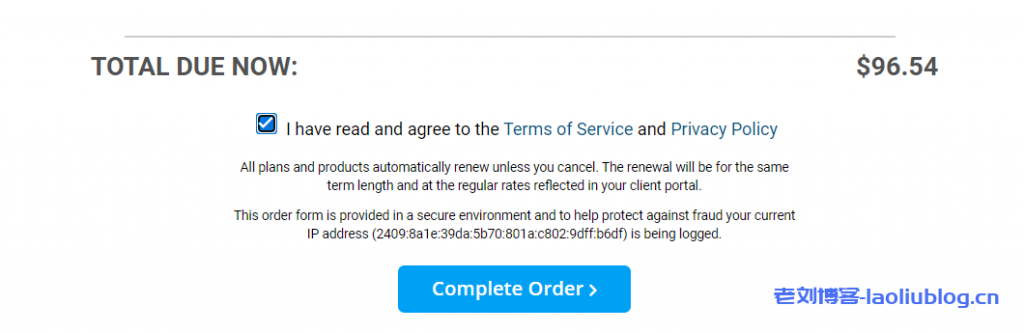 最后,勾选同意服务条款、隐私政策,并确认订单支付: