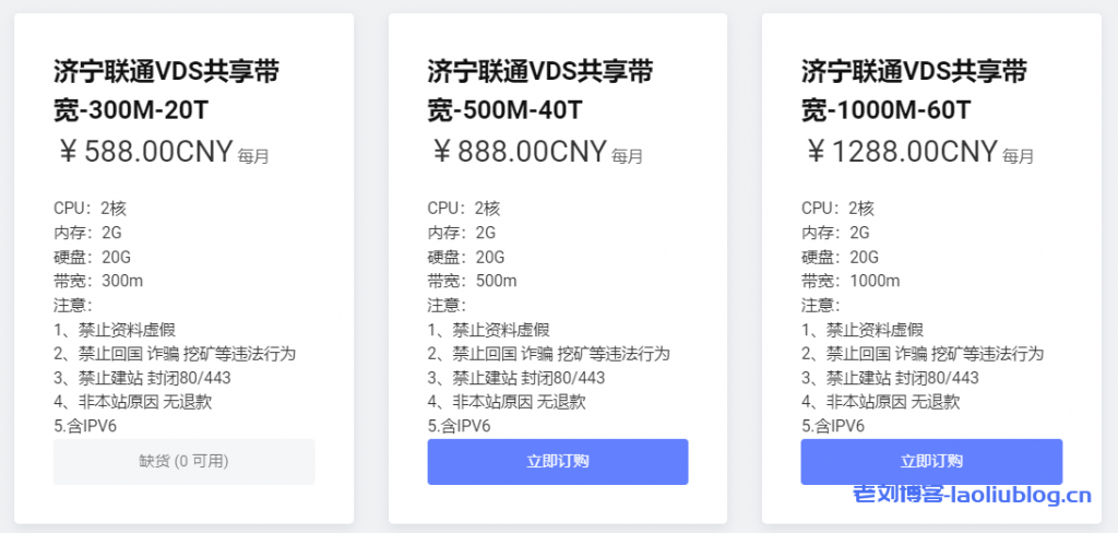 云雀云济宁联通VDS共享带宽现货套餐方案: