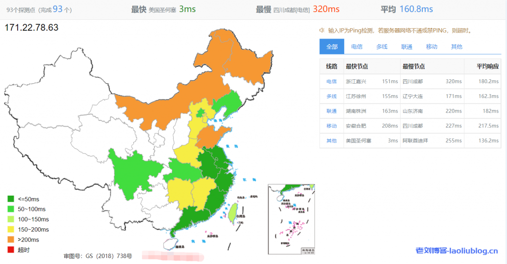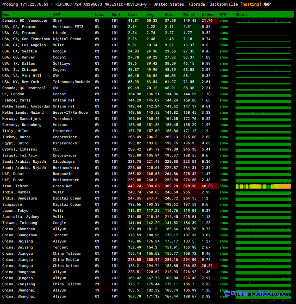 12 120.80.175.78 156.48 ms AS17622 China, Guangdong, Guangzhou, ChinaUnicom