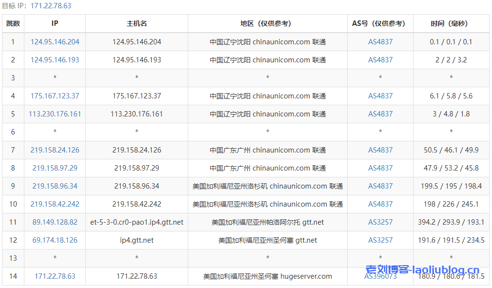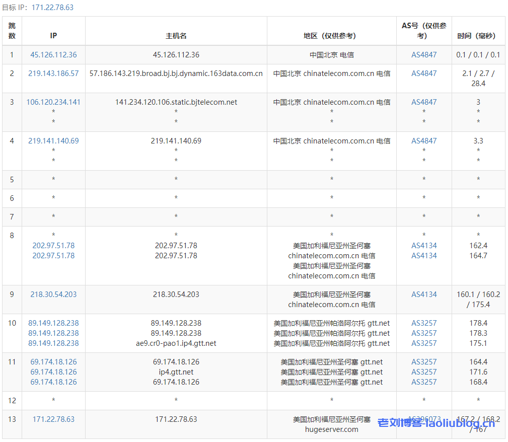 6 218.30.54.202 6.19 ms AS4134 United States, California, San Jose, ChinaTelecom