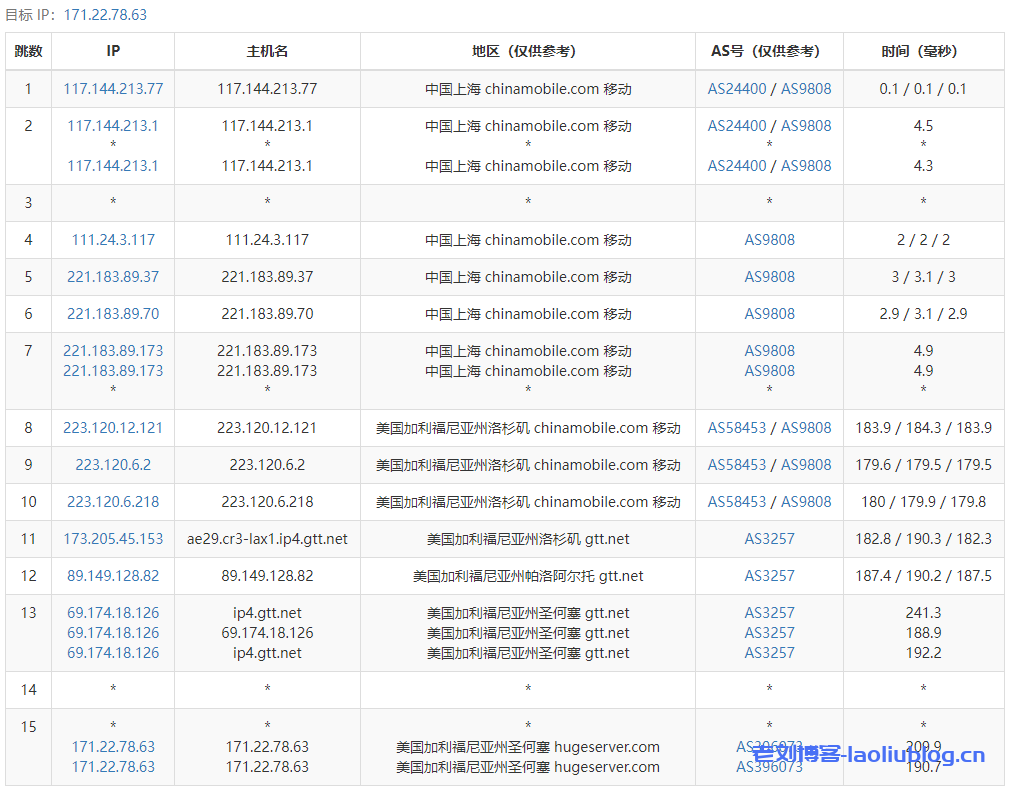 8 221.183.89.178 183.12 ms AS9808 China, Shanghai, ChinaMobile