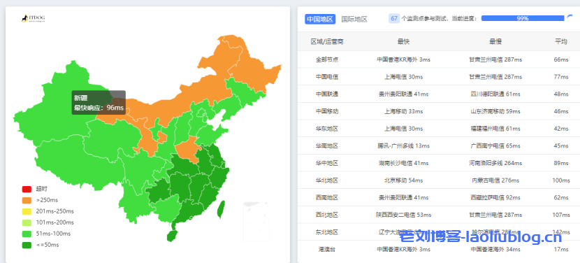 官方提供的各地延迟情况截图:
