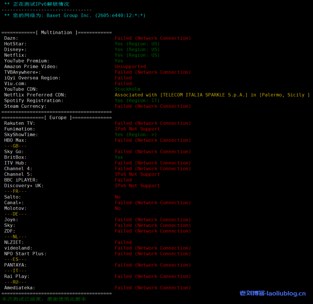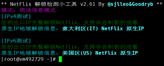 IPv4和IPv6都支持解锁奈菲,且是意大利原生IPv4+美国原生IPv6
