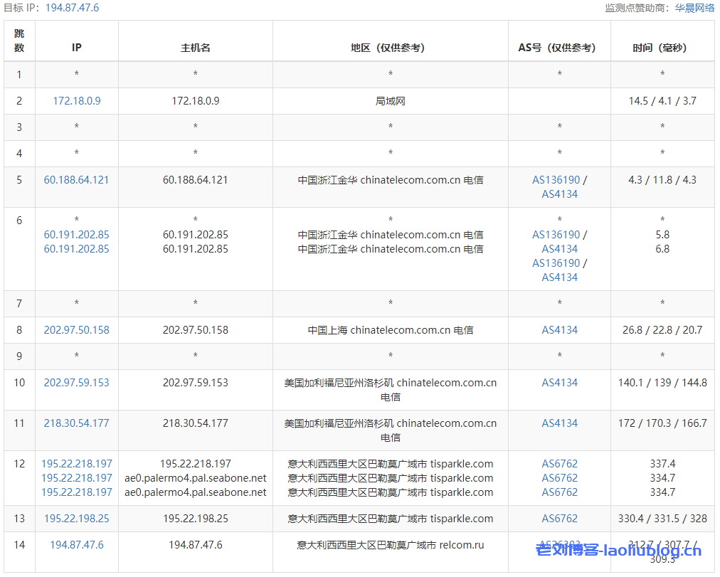 回程路由追踪测试