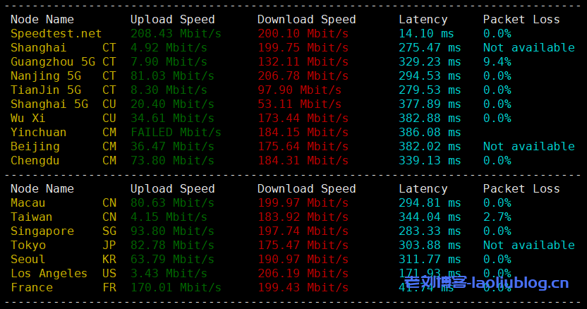 speedtest.net国内外节点测速和网络延迟