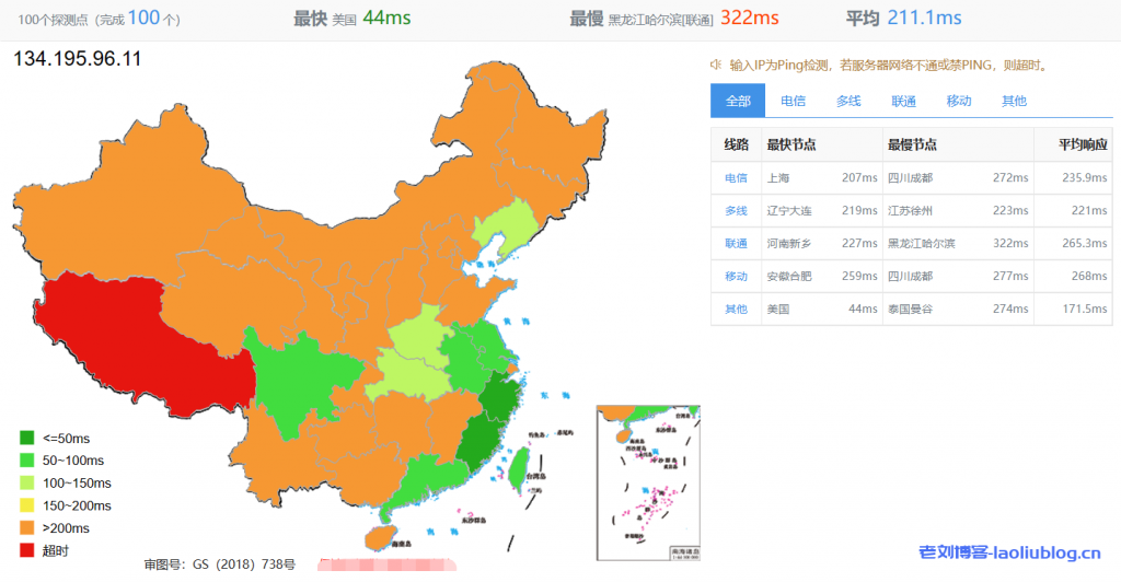 10 223.118.10.85 76.45 ms AS58453 United States, California, Los Angeles, ChinaMobile