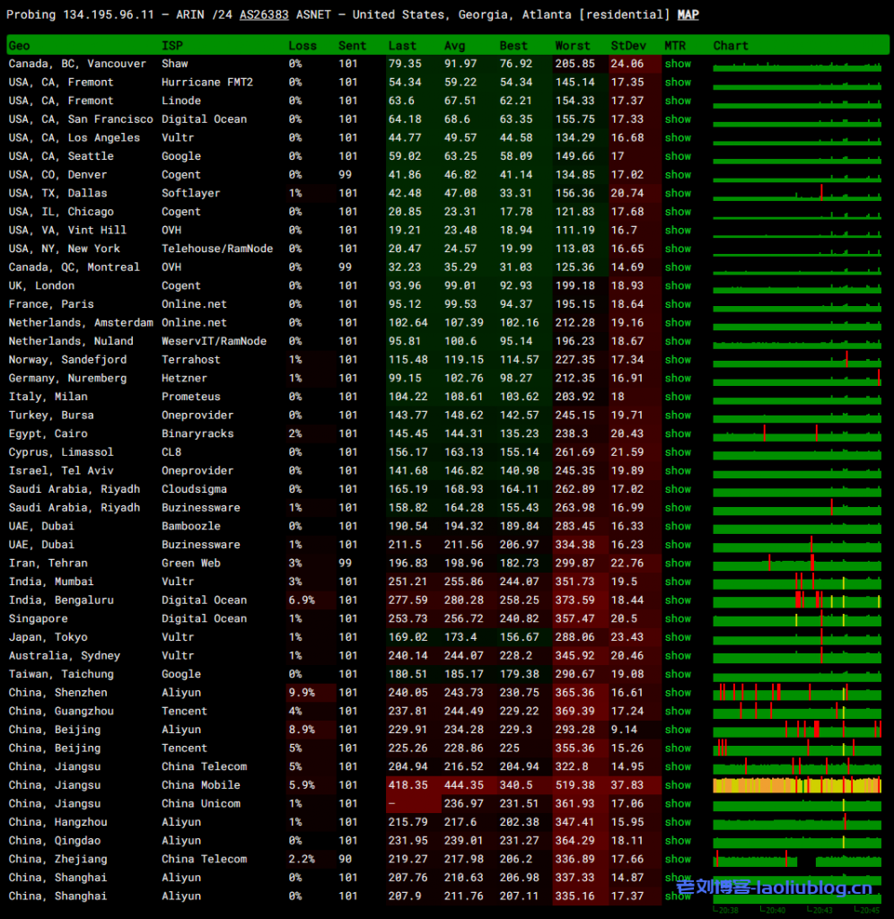 9 38.19.140.98 75.48 ms AS174 United States, California, Los Angeles, cogentco.com