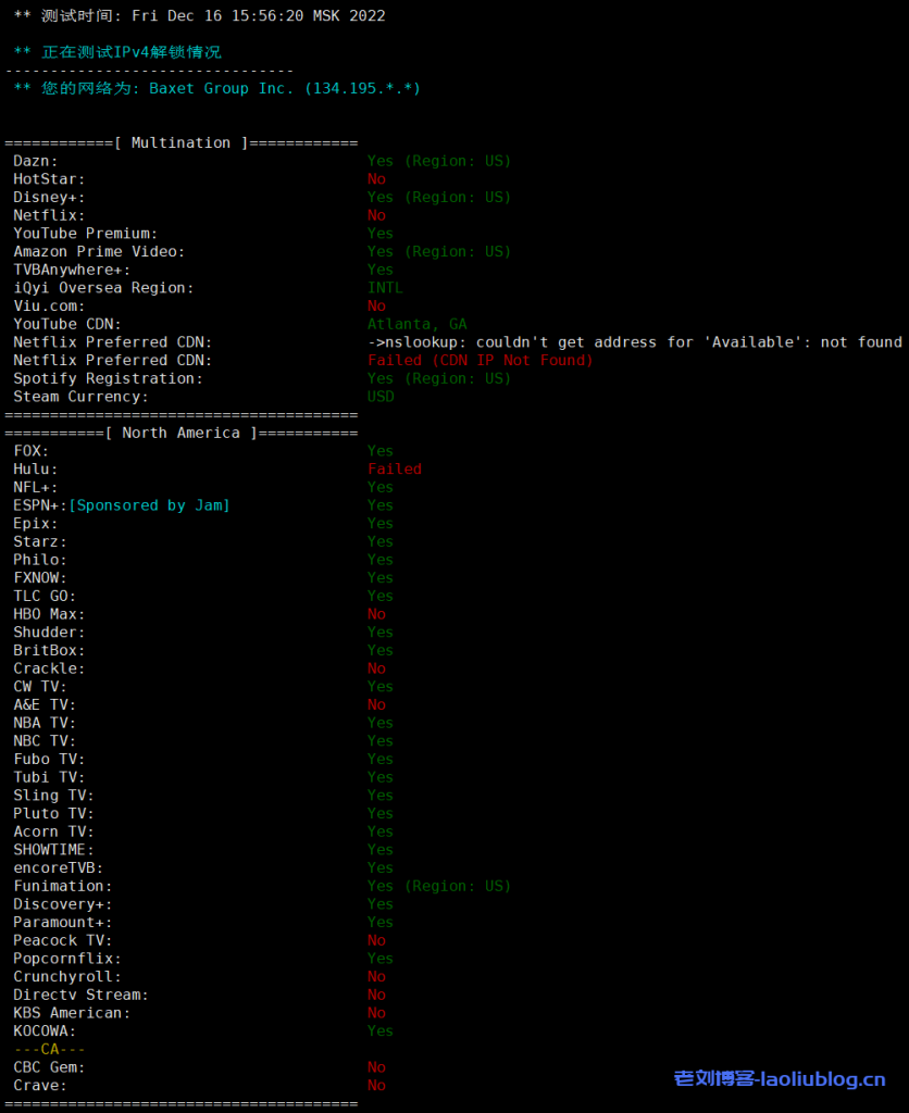 更多流媒体解锁测试