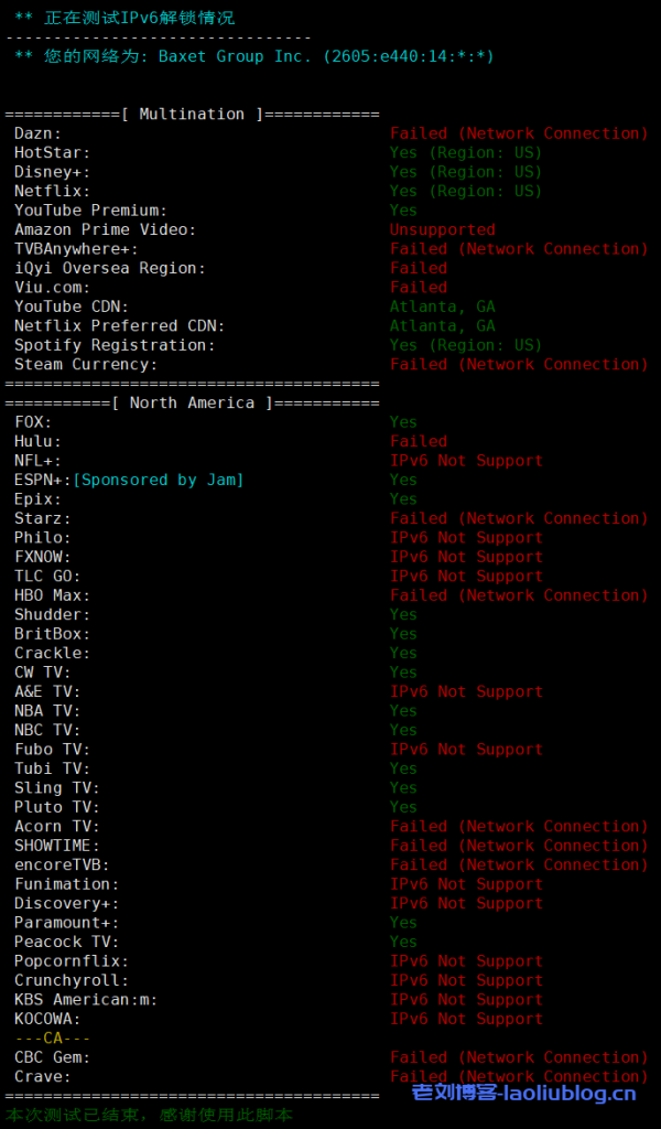 流媒体解锁总结:IPv4支持解锁美区Disney+和大部分北美流媒体、但是不支持解锁Netflix!IPv6支持解锁美区Disney+和Netflix!