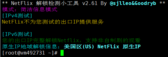 VPS的IPv4不支持解锁奈菲,IPv6是原生IP,而且支持解锁美国区奈菲