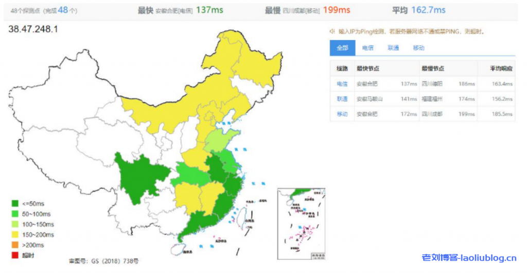 我们再看看全国Ping的延迟效果,如下所示: