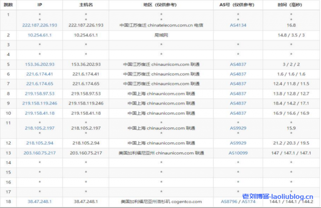 联通回程路由: