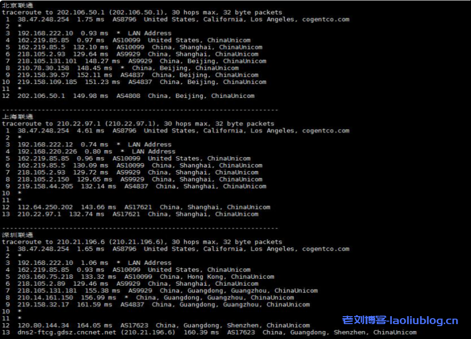 联通回程线路走的是AS9929的联通优化线路,并且都是直连的。