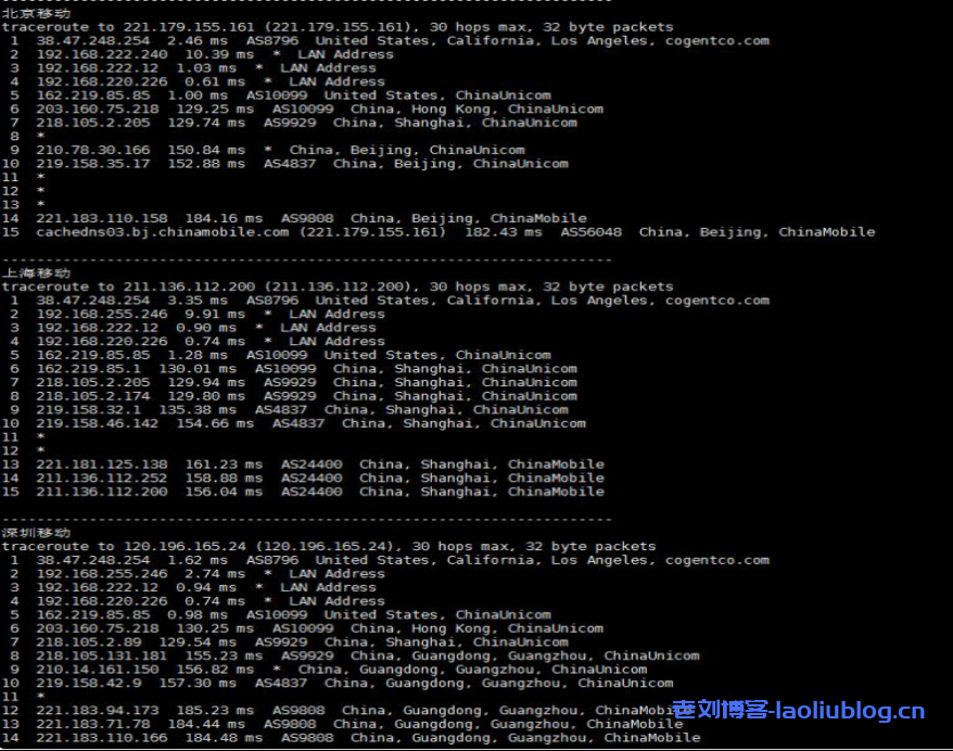移动回程路由是走的联通的AS9929优化线路,一般海外移动线路是很少走这种联通的优化线路的,所以是相当不错的。