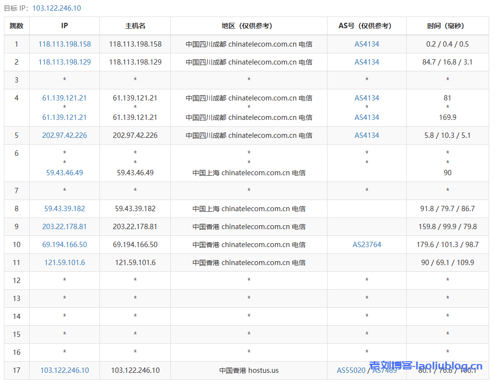 6 69.194.166.53 2.82 ms AS23764 中国, 香港, chinatelecom.com.cn, 电信