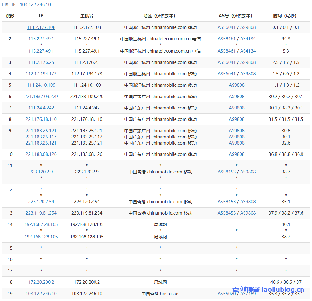 5 223.119.81.253 3.76 ms AS58453 中国, 香港, chinamobile.com, 移动