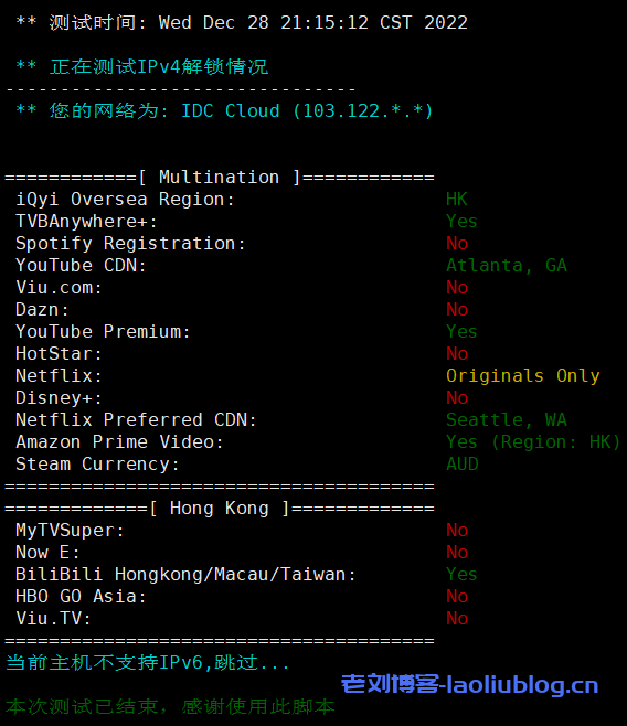 鼎点网络香港大浦物理服务器流媒体解锁测试