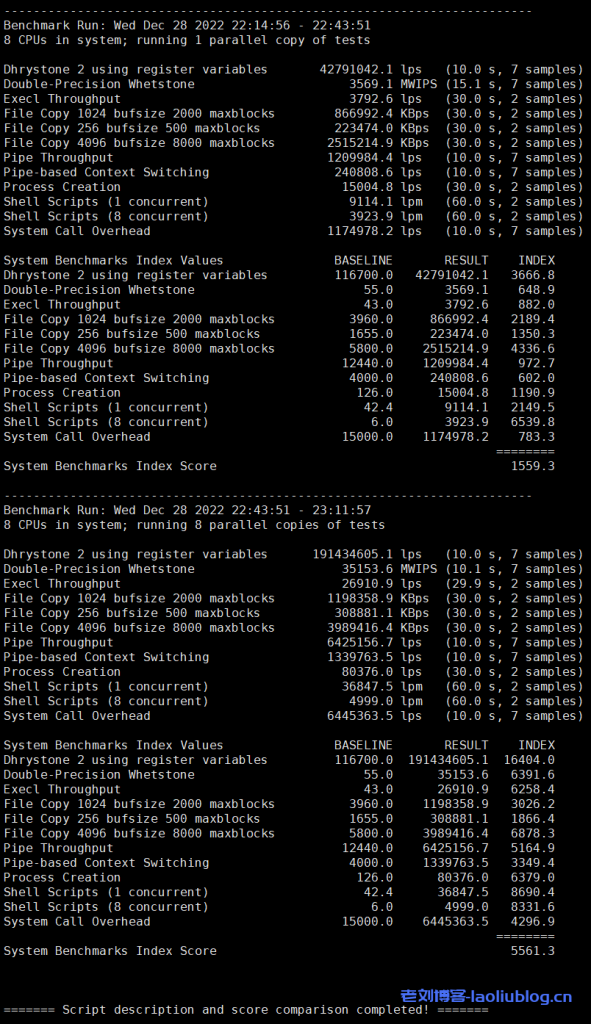 Unixbench跑分结果