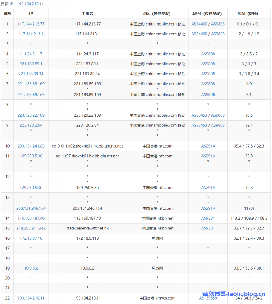 9 221.183.89.174 32.38 ms AS9808 China, Shanghai, ChinaMobile