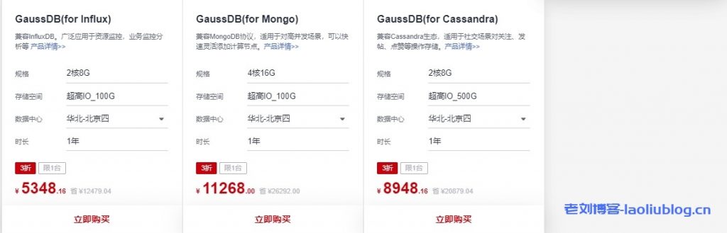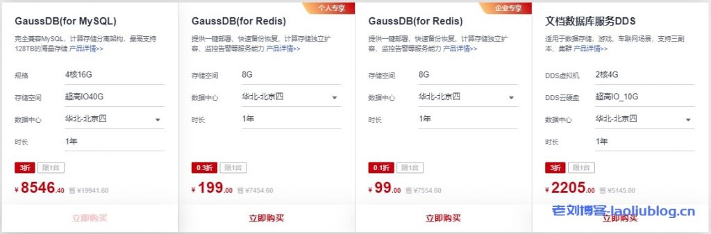 未购买过华为云数据库产品的实名认证用户可购买以下产品,限购数量以页面显示为准。