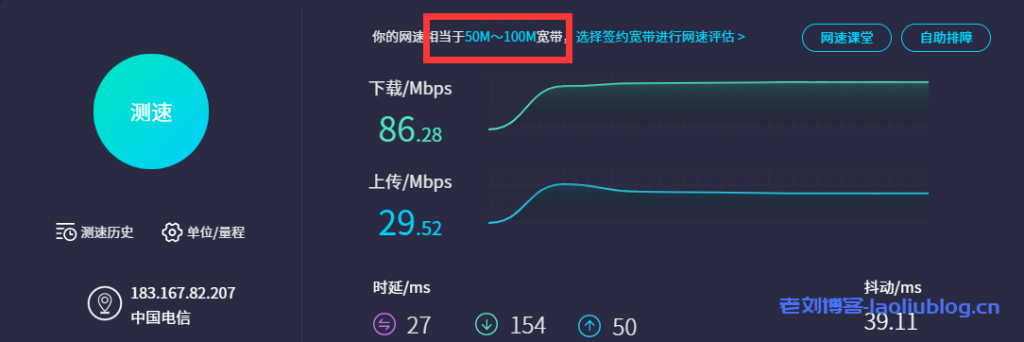 首先站长家里用的是500M电信,不过实测也只有100M左右