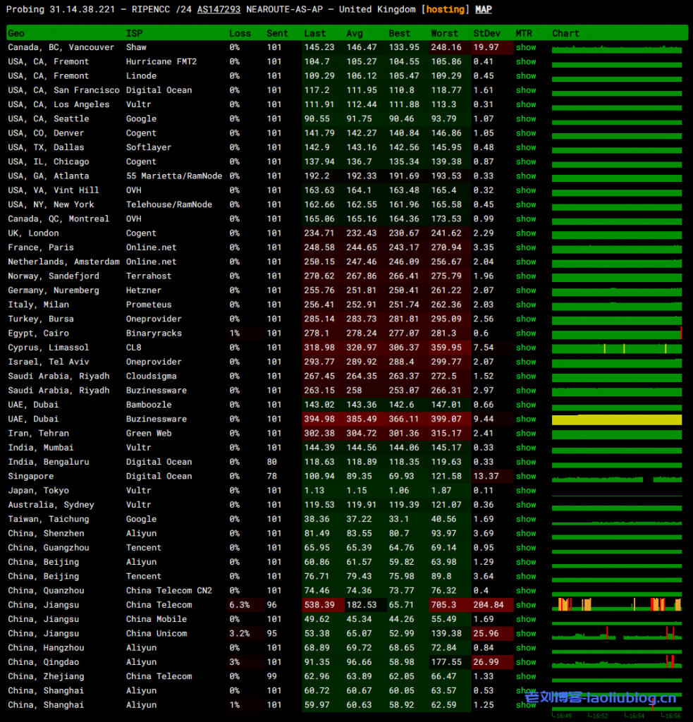 BGP.HE.NET测试为IP在英国,再次印证商家说IP之前被拉去英国用了,据商家反馈IP已经在拉回日本,等等就回来了,而且IP是双ISP的!