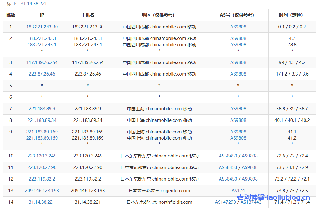 9 221.183.89.46 33.63 ms AS9808 China, Shanghai, ChinaMobile