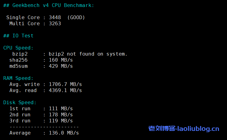 可以看到机器配置情况与上面对机器配置信息测试结果一致