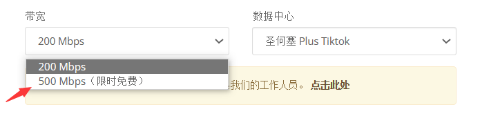 下单时记得带宽选择“500 Mbps(限时免费)“选项。