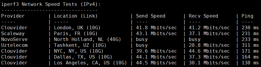 iperf3跑下欧美节点测速