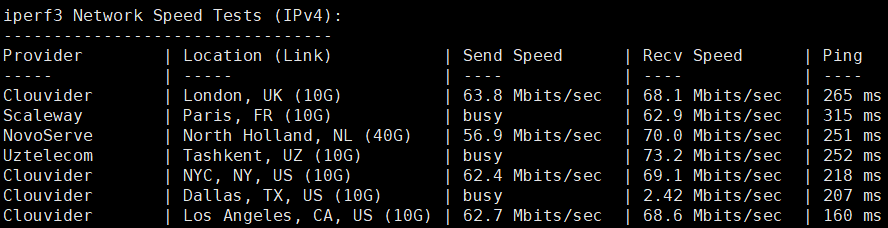 iperf3跑下欧美10G带宽节点数据