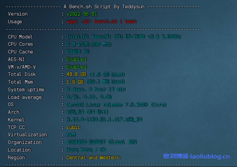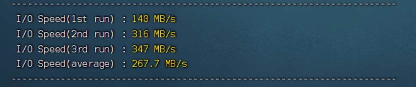本次测评的机器为香港CN2 GIA 2c2g3m 40gssd的机器;服务器的架构为KVM E5-2640 v3的CPU io平均在267.7MB/s左右