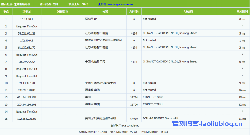 路由去程追踪测试