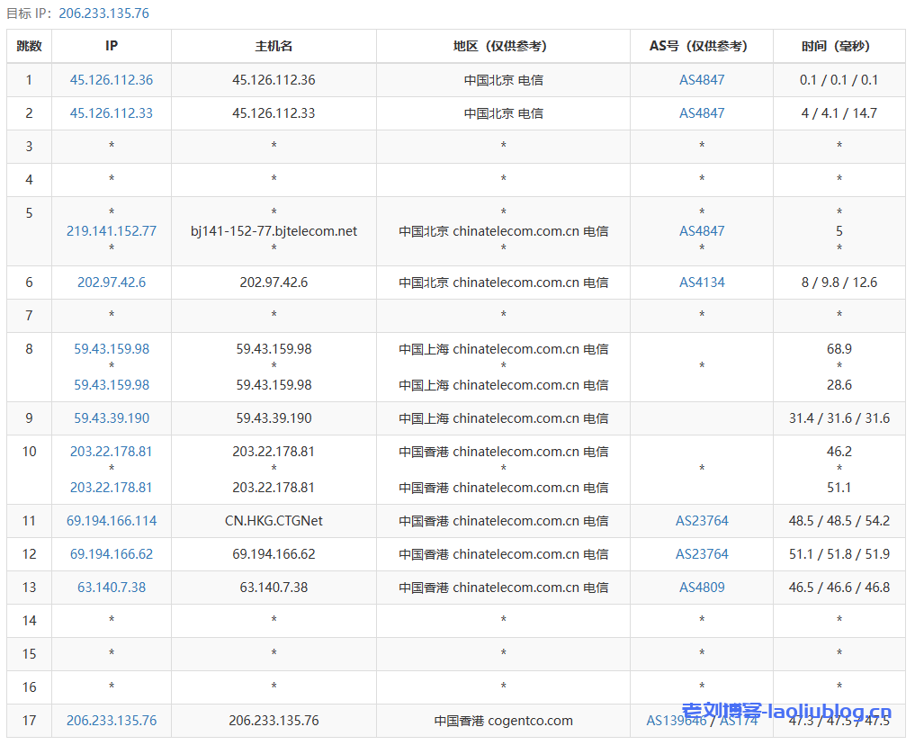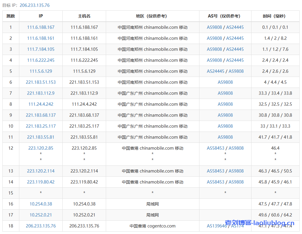 回程路由追踪测试