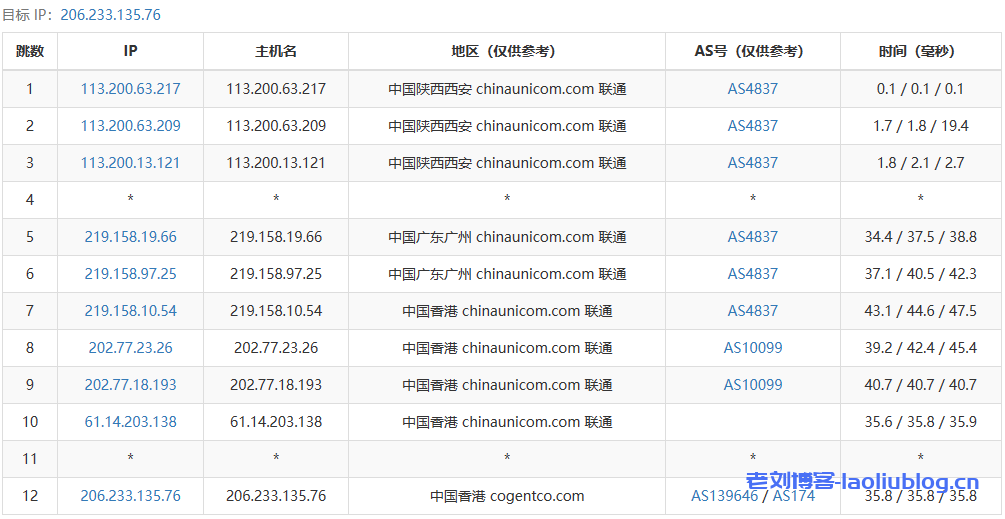 去程路由追踪测试