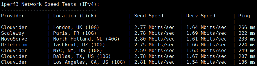 iperf3测试下几个欧美节点的数据: