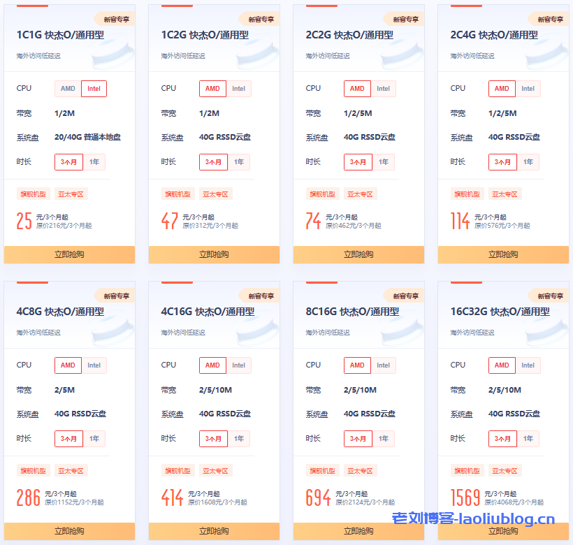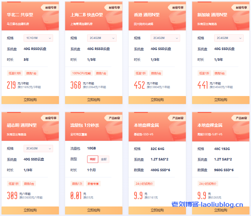 新老用户均可购买,每用户限购5台,包含华北二、上海二、香港、台北、洛杉矶、韩国、日本。
