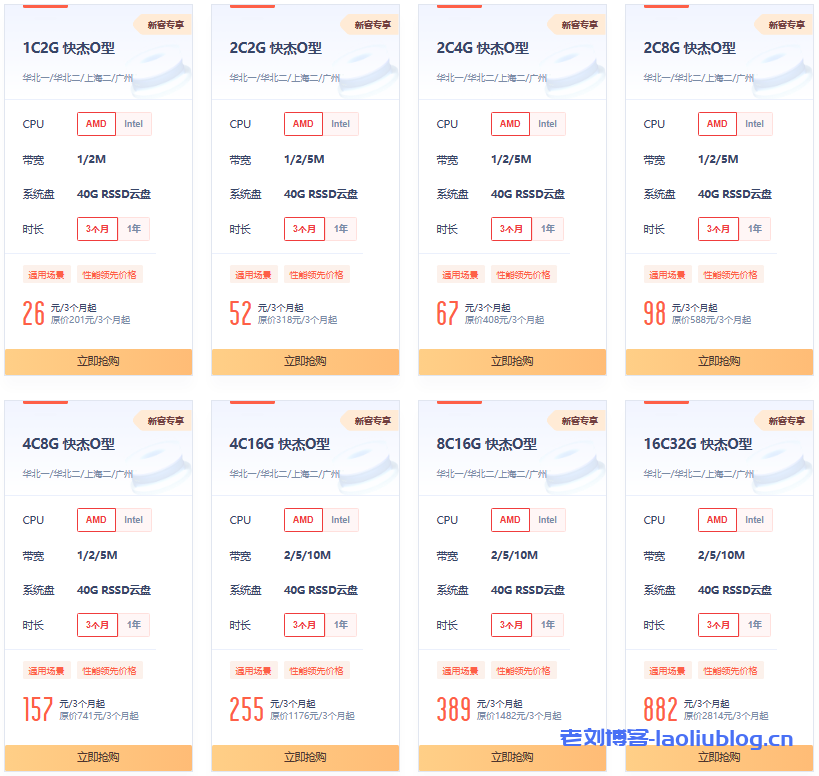 快杰O型-计算、存储与网络性能卓越,适合通用场景,兼具成本和性能优势,IO性能领先友商约50%。