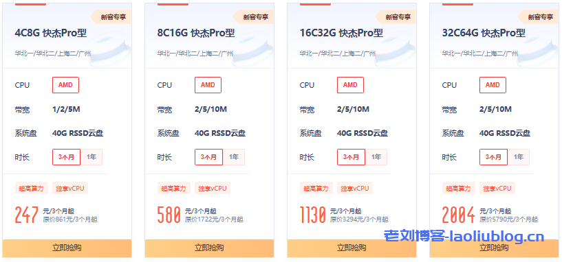 快杰共享型-通过CPU资源性能共享,低成本优质上云。是网站搭建、开发环境配置等轻量级场景首选。