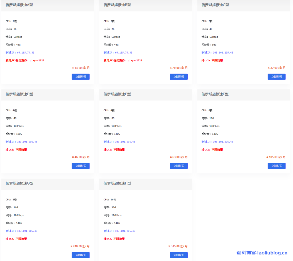 俄罗斯超极速区,别家买不到的快速!CPU均为2692V2,俄罗斯至中国最快线路联通电信cn2!!移动联通直连。不限流量。可增加防御,具体联系工单。