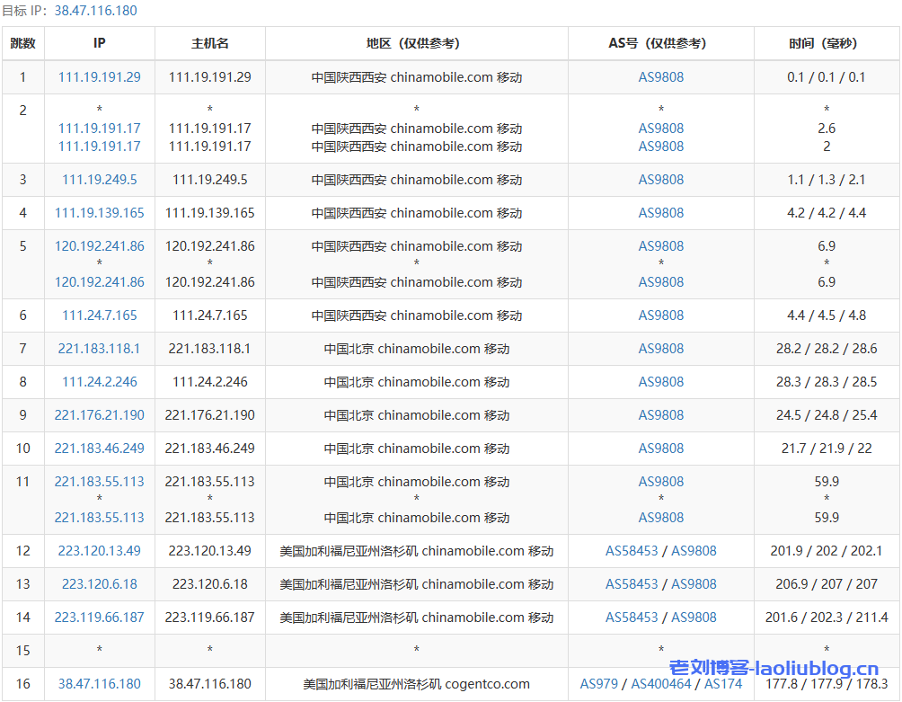 移动回程:完全是走的电信的路由,也就是CN2回国
