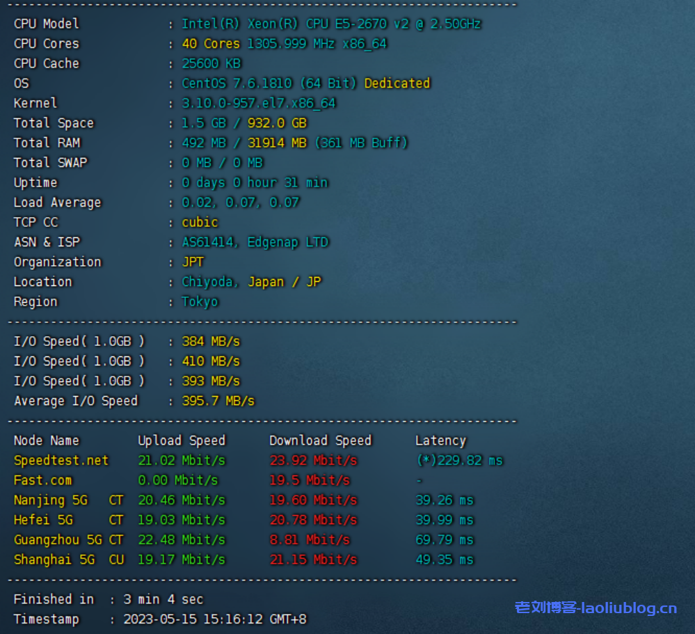 百纵科技-软银优化日本大带宽服务器的测评情况: