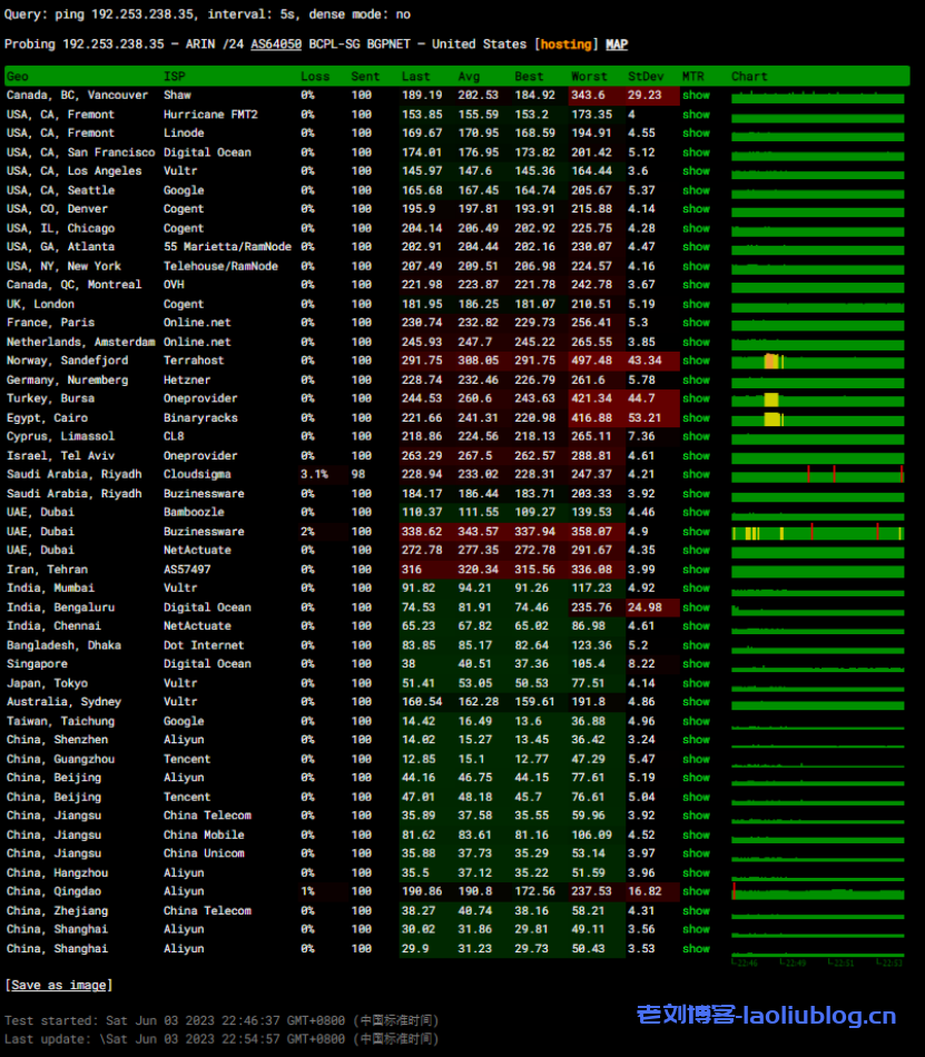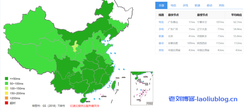 全国延迟都非常低,非常适合建站业务。